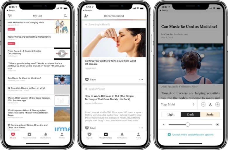 Para isso basta salvar tudo o que deseja ler, sejam notícias ou páginas de um ebook, que o app vai salvar e sincronizar para você.